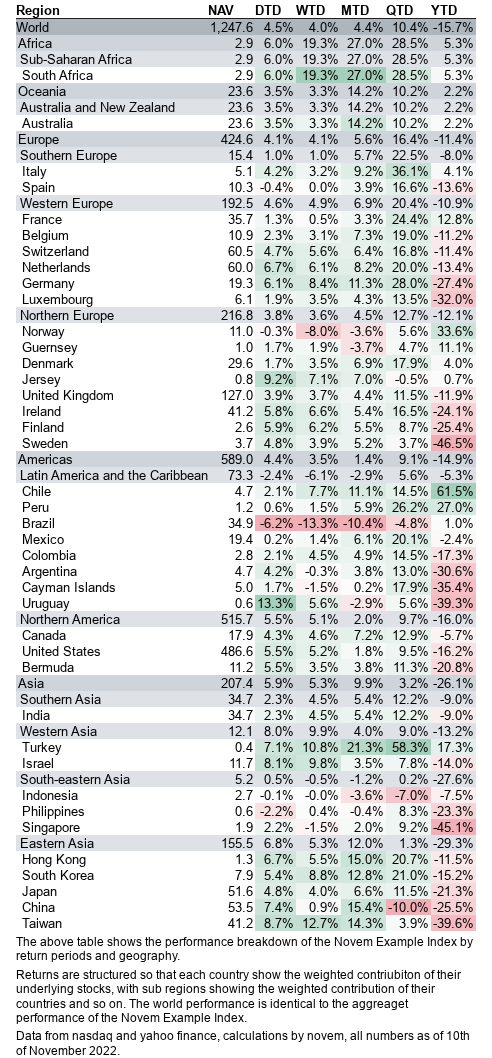 Novem Example Index performance by geography
