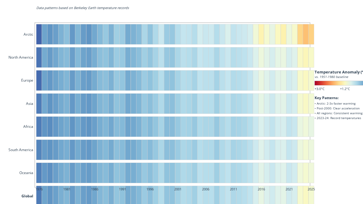 This heatmap reveals the stark reality of climate change across different regions over the past 50 years: